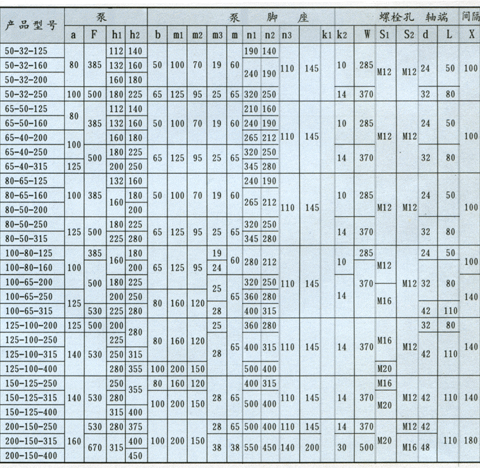 型化工泵法蘭安裝尺寸表
