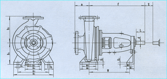 型化工泵外形尺寸圖:
