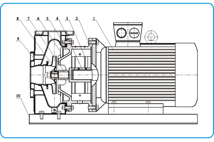 50FSB - 30D 50 – 吸入口直徑(mm) FS – 過流部件材料為氟塑料 B – 單級單吸懸臂式離心泵 30 – 設計揚程(m) D – 短支架聯(lián)接式